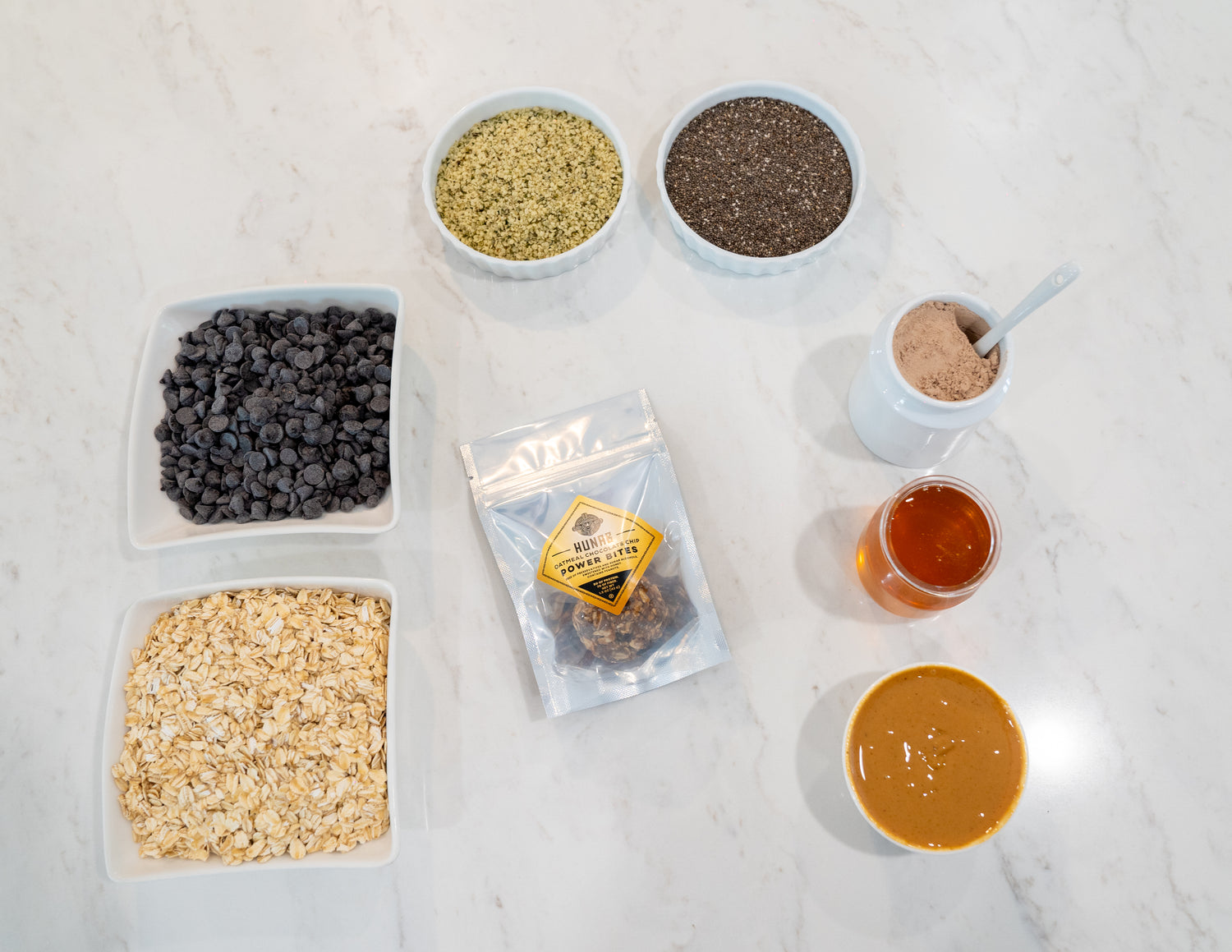 Packed with 8g of vegetarian protein and 7g of fiber. Made with raw ingredients such as oats, hemp seeds, chia seeds, sugar-free chocolate, vegan protein powder, peanut butter and honey.